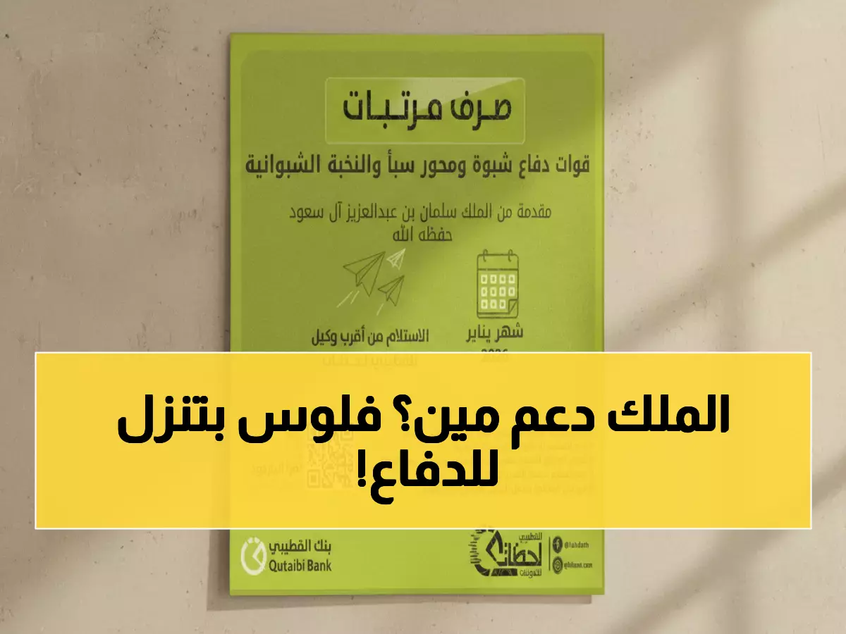 وحدد البنك موعد الصرف خلال شهر يناير 2026، مع إمكانية الحصول على المستحقات من خلال الفروع الرئيسية أو شبكة القطيبي لحظات للتحويلات عبر الوكلاء المعتمدين في المحافظة.