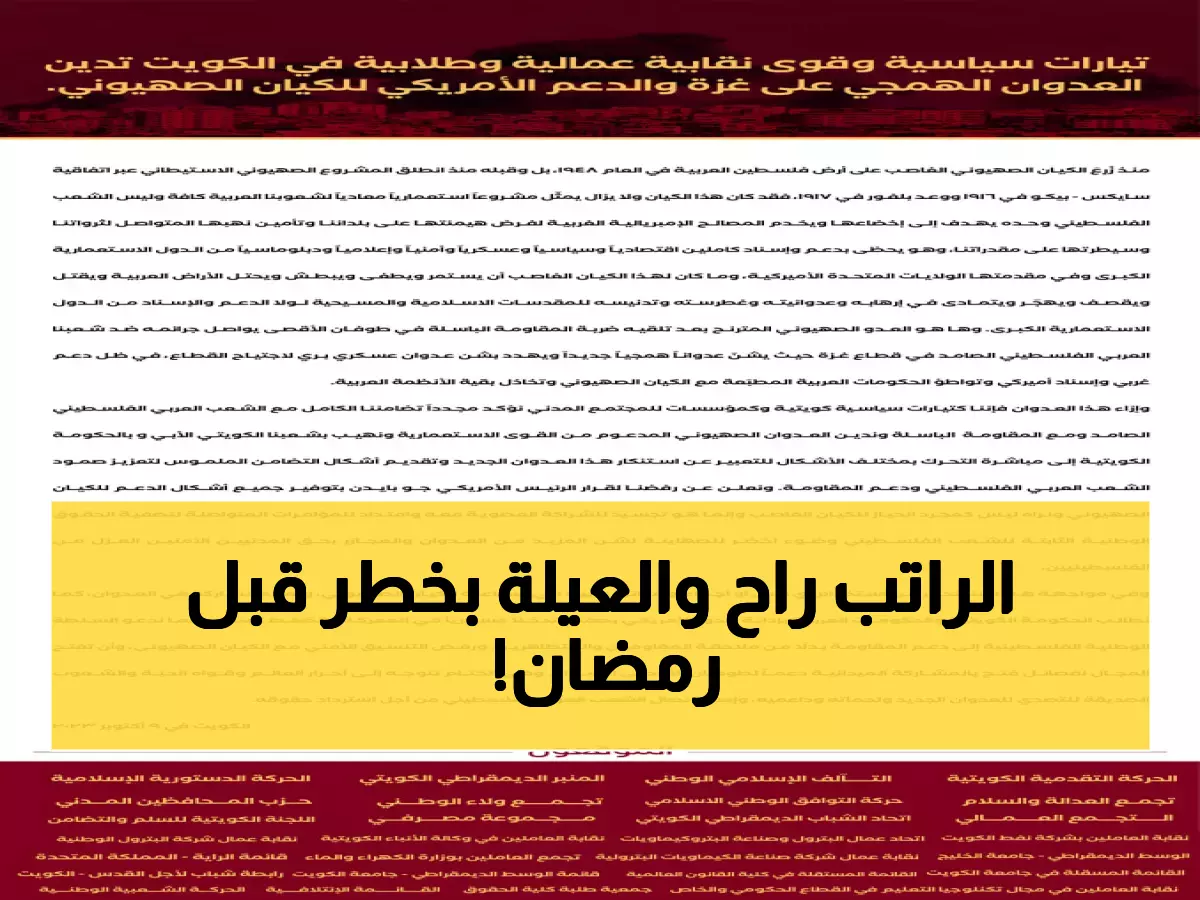 مع اقتراب شهر رمضان المبارك، تواجه آلاف العائلات كابوساً حقيقياً حيث يدخل موظفو الدولة ورجال الأمن والجيش الشهر الكريم دون تسلم مرتباتهم، في أزمة وُصفت بأنها "ظلم كبير" يهدد قدرة الأسر على تأمين احتياجاتها الأساسية.