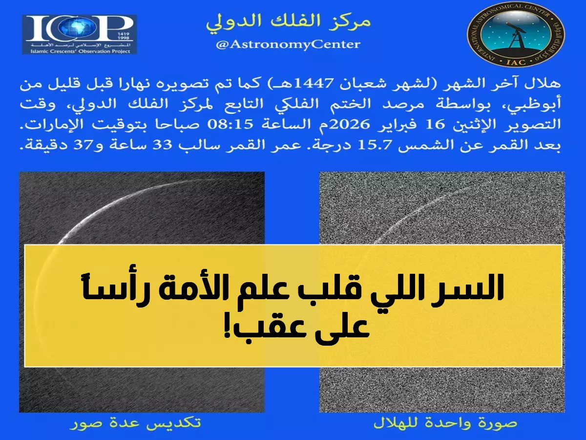 ففي الوقت الذي كان مركز الفلك الدولي يؤكد استحالة رؤية الهلال يوم الأحد 18 يناير 2026 (29 رجب) من جميع أنحاء العالم الإسلامي، جاء الإعلان الرسمي عن نجاح الرصد النهاري في أبوظبي ليقلب المعادلة.