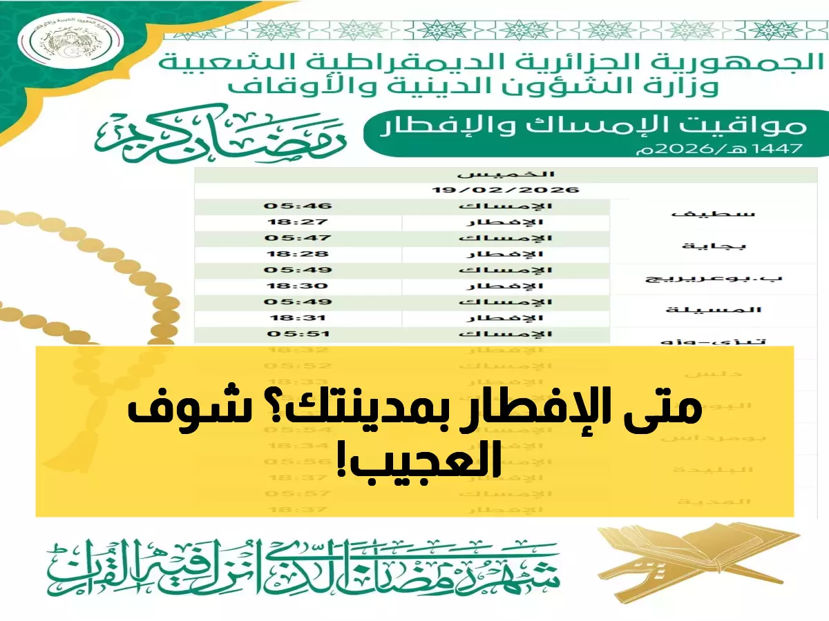 أوقات الإمساك والإفطار في المدن الرئيسية:
