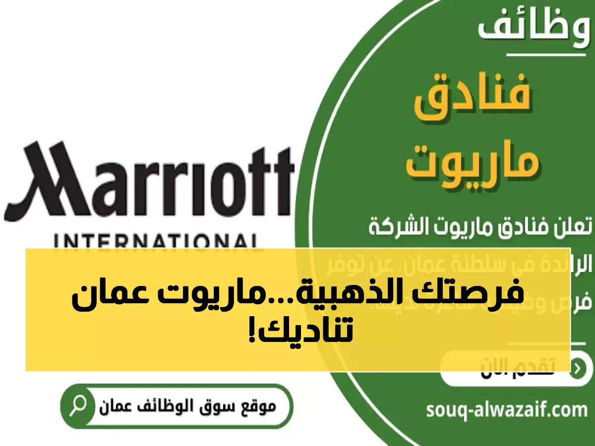ستون وظيفة ذهبية تنتظر المتقدمين من كافة الجنسيات في مسقط! كشفت مجموعة فنادق ماريوت الدولية النقاب عن أضخم حملة توظيف شهدها قطاع الضيافة العماني، مستهدفة الرجال والنساء عبر طيف واسع من التخصصات المطلوبة.