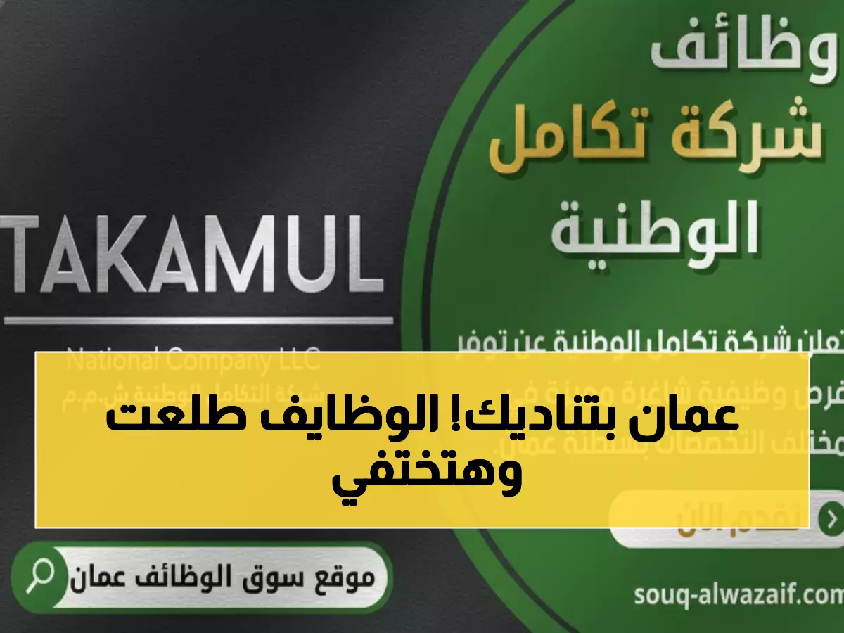 أعلنت شركة Takamul National عن فتح باب التقديم الفوري لفرص وظيفية جديدة ومتعددة في سلطنة عمان، مستهدفةً الكفاءات المهنية الراغبة في الانضمام إليها اليوم.