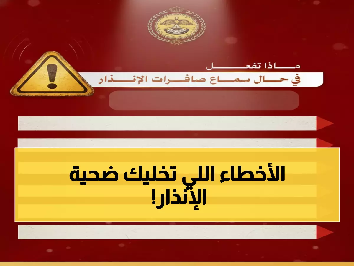 - النغمة الأولى (ثابتة متقطعة - 60 ثانية): تعني قرب وقوع الخطر، والخطأ الشائع هنا هو الخروج للأماكن المكشوفة بدلاً من التوجه فوراً لأقرب مكان آمن داخل المباني