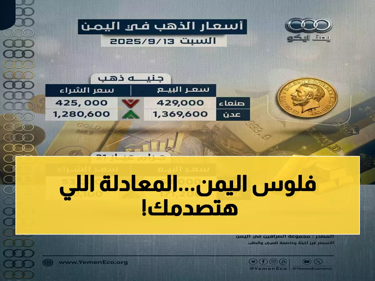 يترجم هذا الانقسام النقدي مباشرة إلى أسعار معيشية متباينة بشكل دراماتيكي. خذ سوق الذهب كمثال حي: جرام الذهب عيار 21 يباع في عدن بسعر 205,000 ريال، بينما يصل سعره في صنعاء إلى 70,000 ريال للجرام نفسه. أي أن المواطن في الجنوب يدفع ما يقارب 135,000 ريال إضافية مقابل نفس القطعة من المعدن النفيس.
