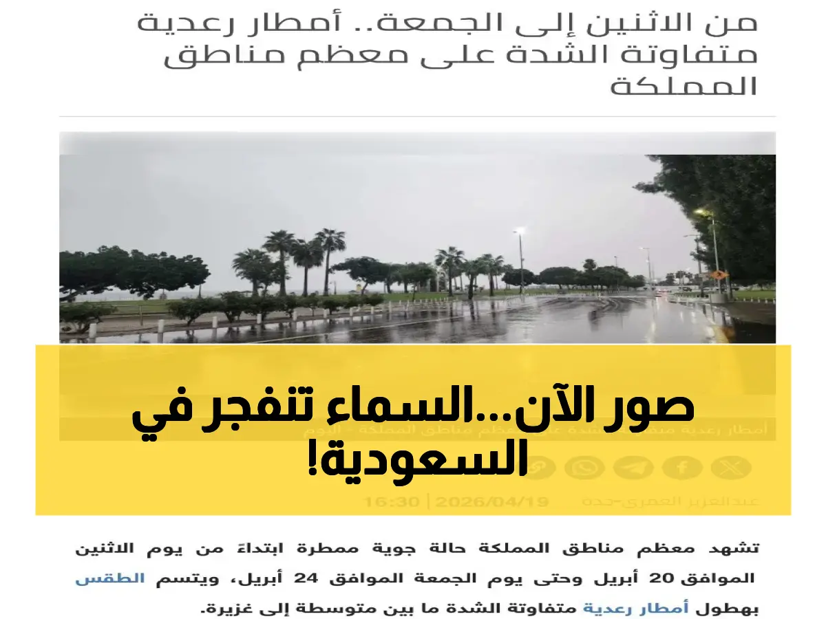 وتتواصل الحالة على منطقة الرياض لتشمل مدينة الرياض ومحافظات الدلم والمزاحمية وضرما ومرات والقدية والدرعية والرين والحريق والخرج وحوطة بني تميم وعفيف والدوادمي والقويعية والغاط والزلفي والمجمعة وشقراء وثادق وحريملاء ورماح، مع توقعات بهطول أمطار متوسطة إلى غزيرة خلال الفترة من 20 إلى 24 أبريل، تزداد حدتها يومي الخميس والجمعة.