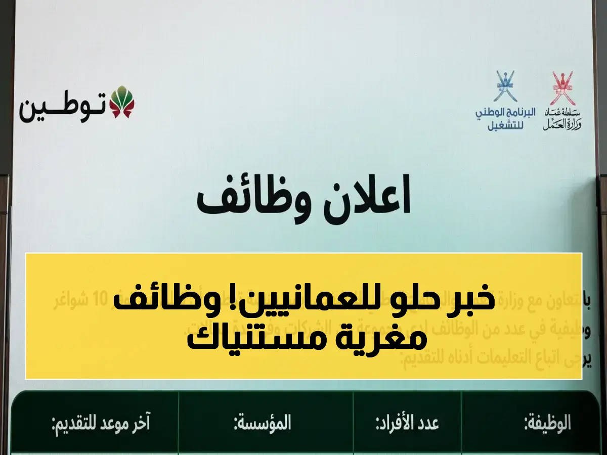 تأتي هذه الفرص في إطار الجهود المستمرة لتعزيز سياسات الإحلال ورفد سوق العمل بالكفاءات الوطنية، وتتنوع لتشمل تخصصات دقيقة تتماشى مع رؤية عُمان 2040.