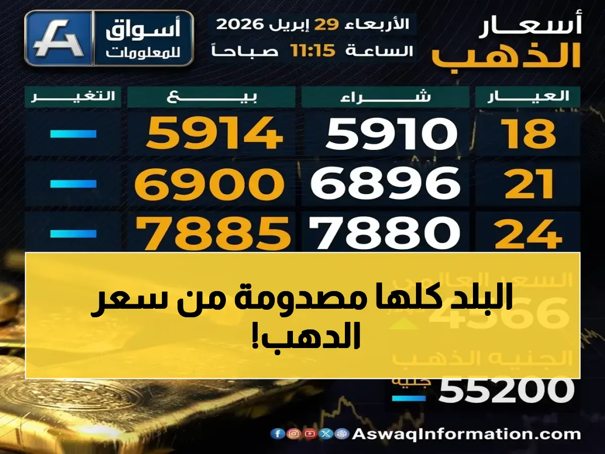 وقد شهدت أسواق الذهب المحلية في مصر حالة من الثبات النسبي مع بداية تعاملات يوم الأربعاء 29 أبريل 2026، وذلك بعد موجة تراجع حاد ضربت المعدن الأصفر في البورصات الدولية خلال الساعات الماضية، وصلت فيها الأسعار العالمية إلى أدنى مستوياتها منذ نحو 21 يوماً.