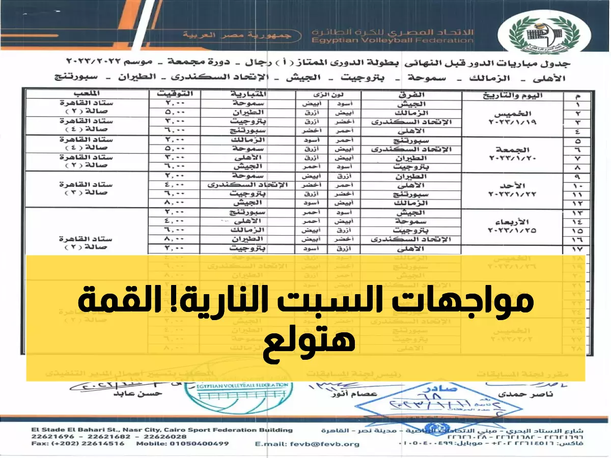 السبت المقبل سيشهد معركة حقيقية على أرض الملاعب! تنطلق يوم 27 ديسمبر 2025 منافسات الدور الثاني لبطولة الكرة الطائرة الممتازة، حيث يصطدم عمالقة اللعبة المصرية في مواجهات تحدد مصير الموسم.