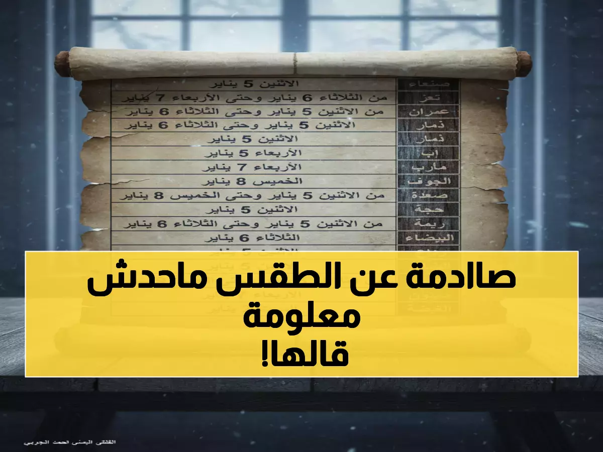 وفي تطور مخيف، كشفت البيانات أن صعدة ستعيش أطول كابوس بردي يمتد 4 أيام كاملة من الاثنين 5 يناير وحتى الخميس 8 يناير، فيما ستذوق البيضاء طعم الجحيم الأبيض يوم الثلاثاء 6 يناير فقط.