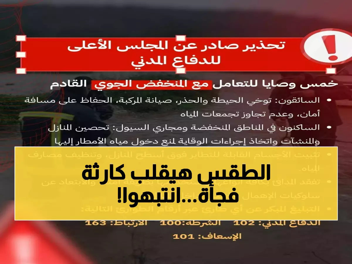 وأكدت مصلحة الدفاع المدني أن فرق المتابعة تراقب التطورات الجوية بشكل مستمر، مناشدة الجميع التقيد بالإرشادات الوقائية لضمان سلامة الأرواح وحماية الممتلكات من تبعات هذه الظاهرة الجوية الاستثنائية.