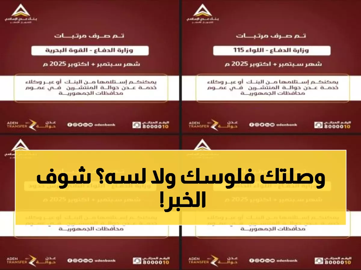 ستون يوماً من الانتظار القاتل انتهت اليوم - فبعد معاناة امتدت شهرين كاملين، بدأت عملية إنقاذ مالي حقيقي لآلاف الجنود وعائلاتهم مع إطلاق بنك عدن الإسلامي للتمويل الأصغر عملية صرف المستحقات المتراكمة لشهري سبتمبر وأكتوبر 2025.