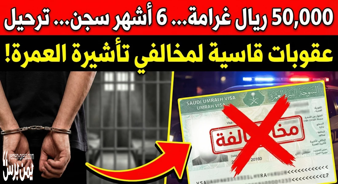 ستُطبق بحقك عقوبات تصل إلى غرامة مالية مقدارها 50,000 ريال، والسجن لمدة ستة أشهر، والترحيل. الوكالة السعودية