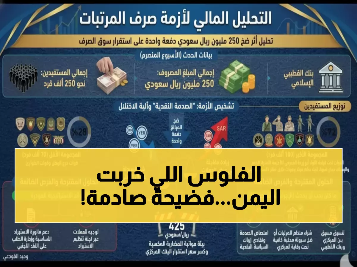المؤامرة المكشوفة: يشير الخبير الاقتصادي إلى أن غياب التنسيق المسبق بين البنك المركزي وبنك القطيبي لم يكن مجرد خطأ إداري، بل فتح الباب واسعاً أمام المضاربين لاستغلال هذا الخلل النقدي. وأضاف أن البنك المركزي كان بإمكانه احتواء الصدمة عبر آليتين حاسمتين: شراء هذه المبالغ من البنك المنفذ مباشرة، أو ترتيب آلية لشرائها من الأفراد بالسعر الرسمي مع ضخ سيولة كافية بالريال اليمني تحت إشراف رقابي صارم.
