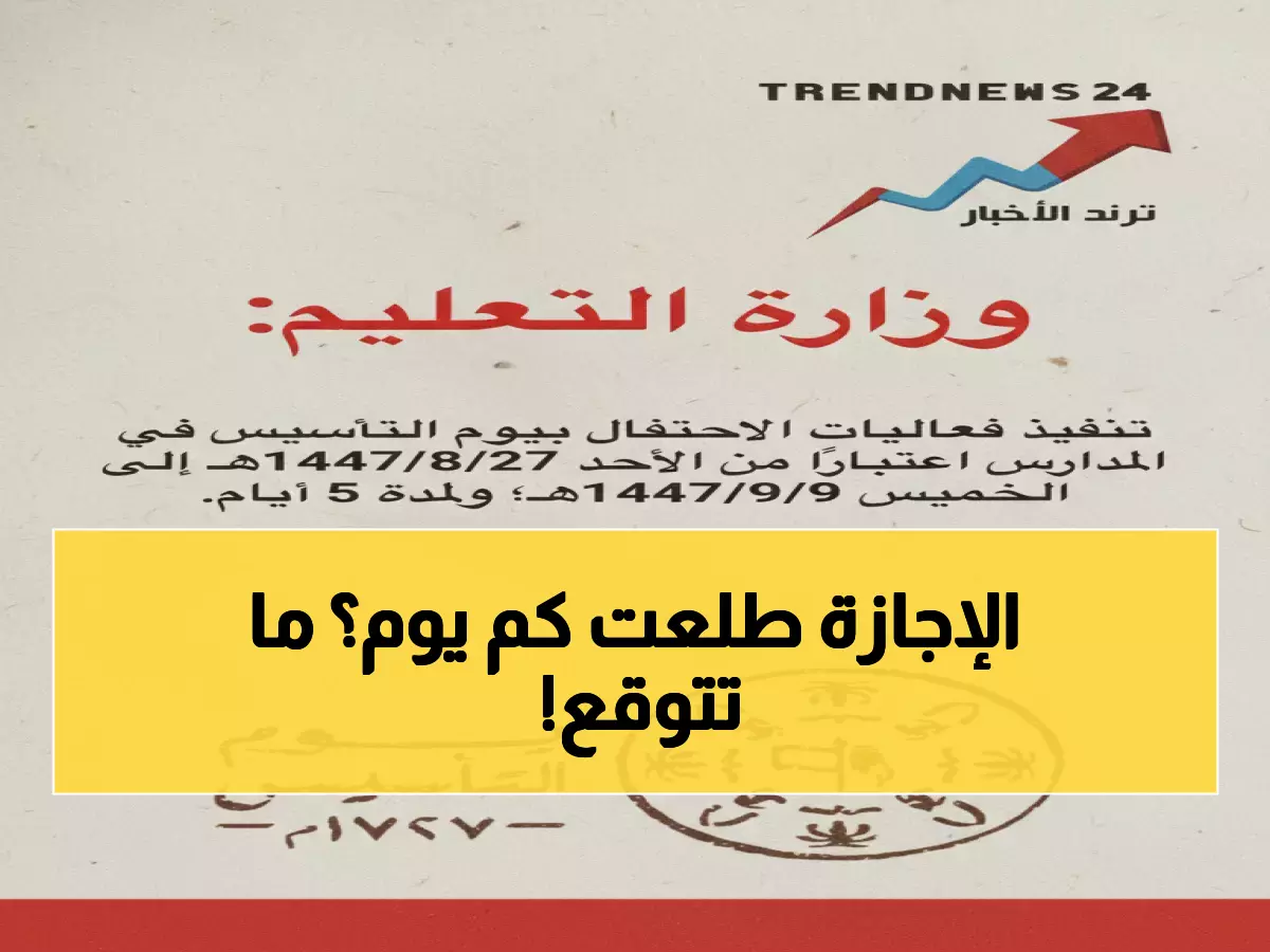 الرئيسية / شؤون محلية / رسمي: التعليم تكشف حقيقة إجازة يوم التأسيس 1447 - يوم واحد فقط للطلاب والاحتفالات تستمر أسبوعين!