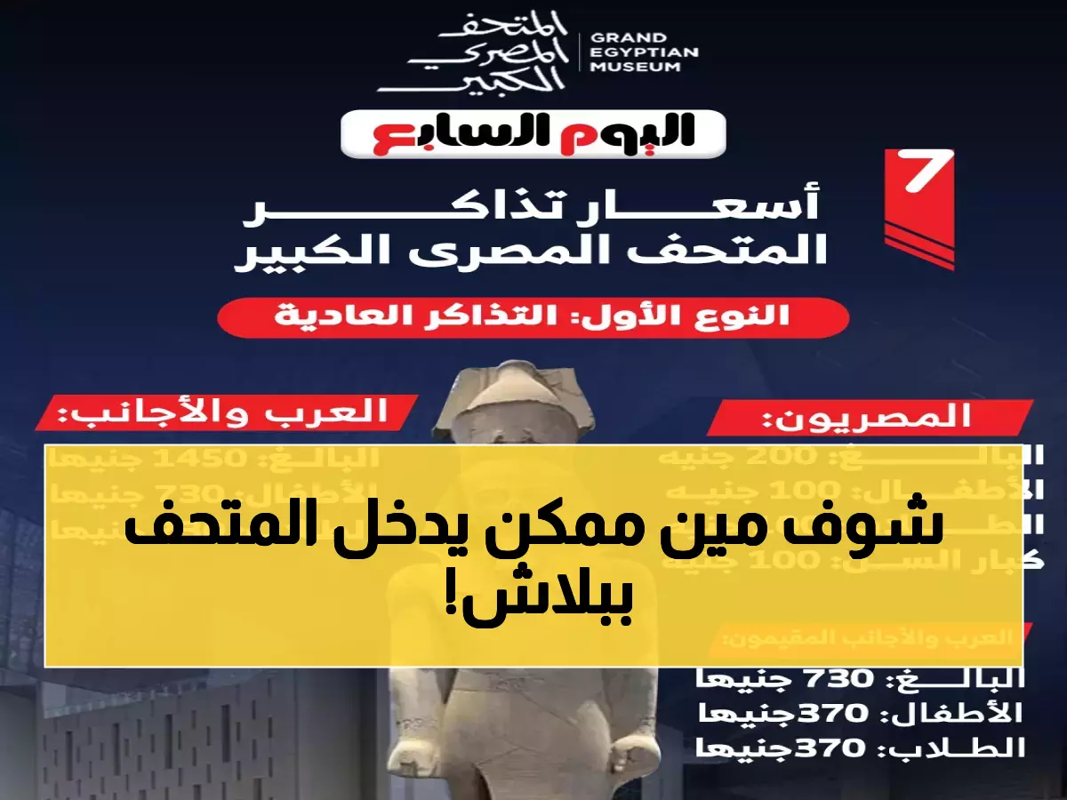 عاجل: المتحف المصري الكبير يُعلن إعفاءات مجانية وتخفيضات 50% لهذه الفئات… تعرف على شروط الاستفادة!