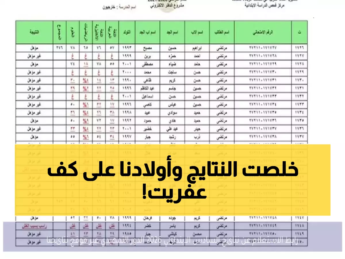 عاجل: رابط نتائج السادس الابتدائي 2026 متاح الآن مجاناً… هل نجح طفلك؟