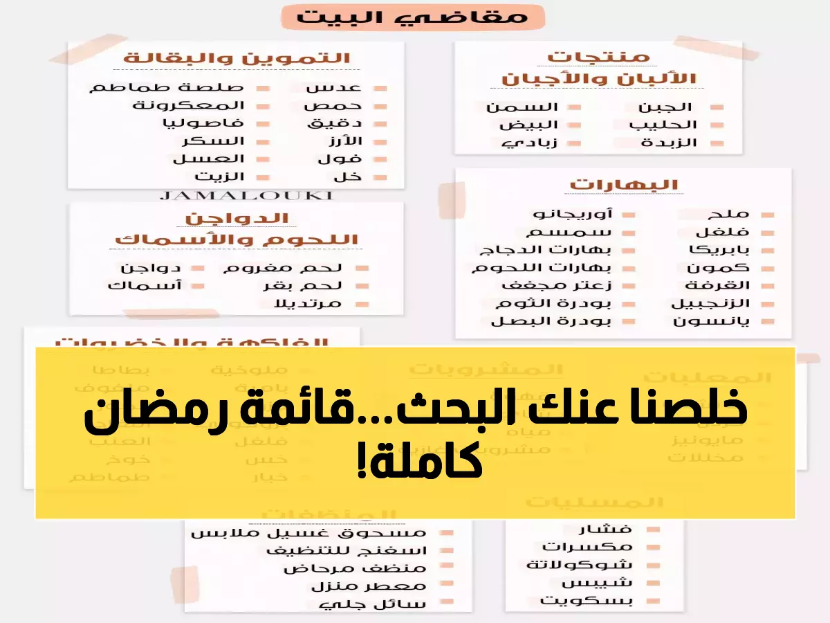 وتأتي هذه القائمة الشاملة استجابة للتساؤل المتكرر مع قرب حلول الشهر الفضيل، حيث تشرع العائلات في تحضيراتها المبكرة لضمان توفير كافة احتياجات مائدتي الإفطار والسحور بطريقة منهجية ومدروسة.