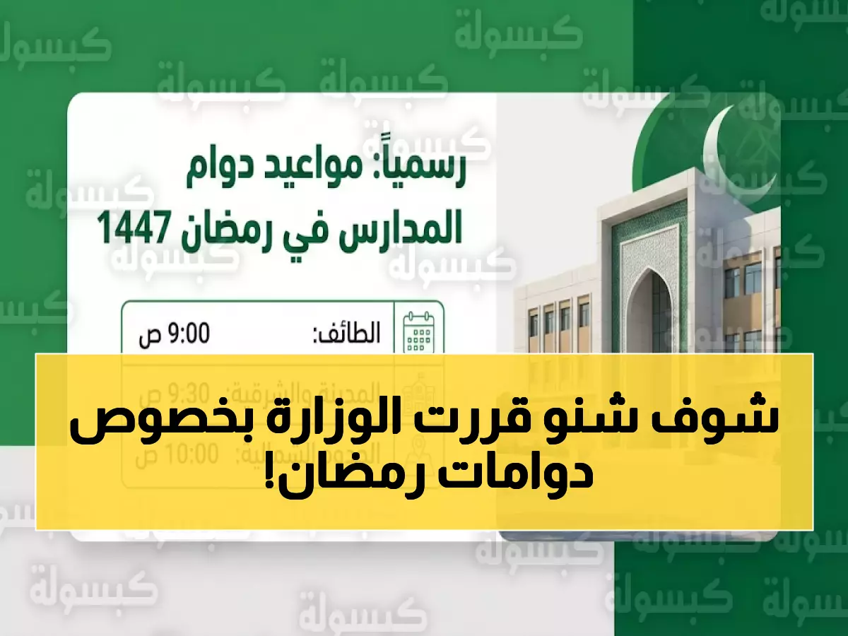 عاجل: وزارة التعليم تكشف المواعيد الجديدة للمدارس في رمضان 2025... تغييرات جذرية تشمل 15 منطقة!