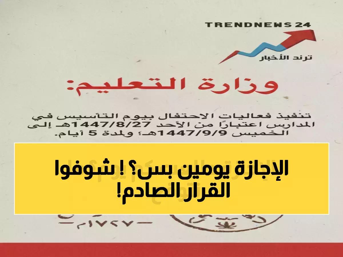 عاجل: التعليم تحسم الجدل.. إجازة يوم التأسيس للطلاب 24 ساعة فقط والتمديد 5 أيام حصري لـ"جامعة الملك عبدالعزيز"