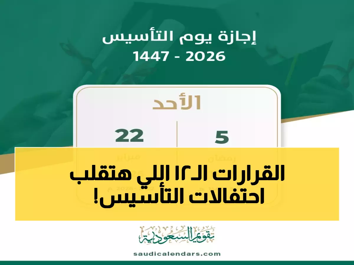 بعد خمسة أيام فقط، ستنطلق إجازة رسمية تستمر ليوم واحد، تليها أسبوعان كاملان من الاحتفالات الشعبية في جميع أنحاء المملكة، وذلك وفقاً لما كشفته وزارة الموارد البشرية والتنمية الاجتماعية حول تفاصيل احتفالات يوم التأسيس السعودي 2026.