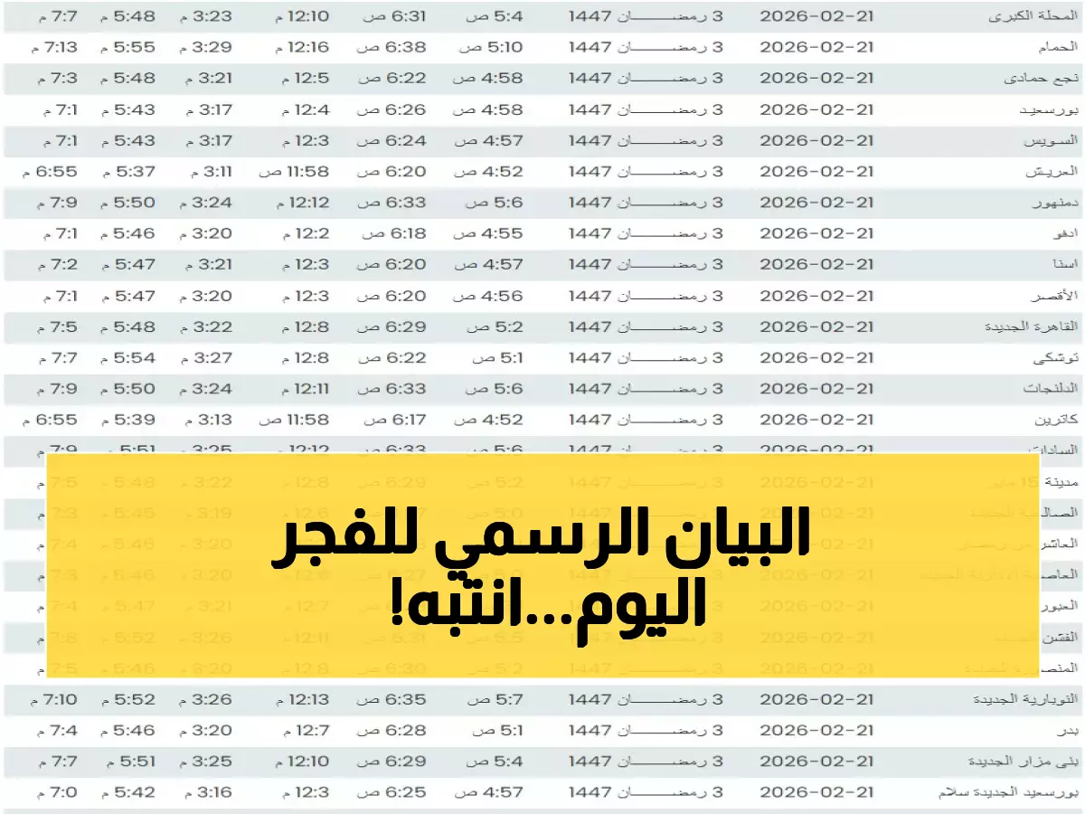 كما أصدرت الهيئة توقيتات بورسعيد والأقصر، حيث يؤذن للفجر في بورسعيد عند 4:58، وفي الأقصر عند 4:56، مؤكدة التزامها بتوفير حسابات دقيقة تراعي التوقيت المحلي لكل منطقة جغرافية.