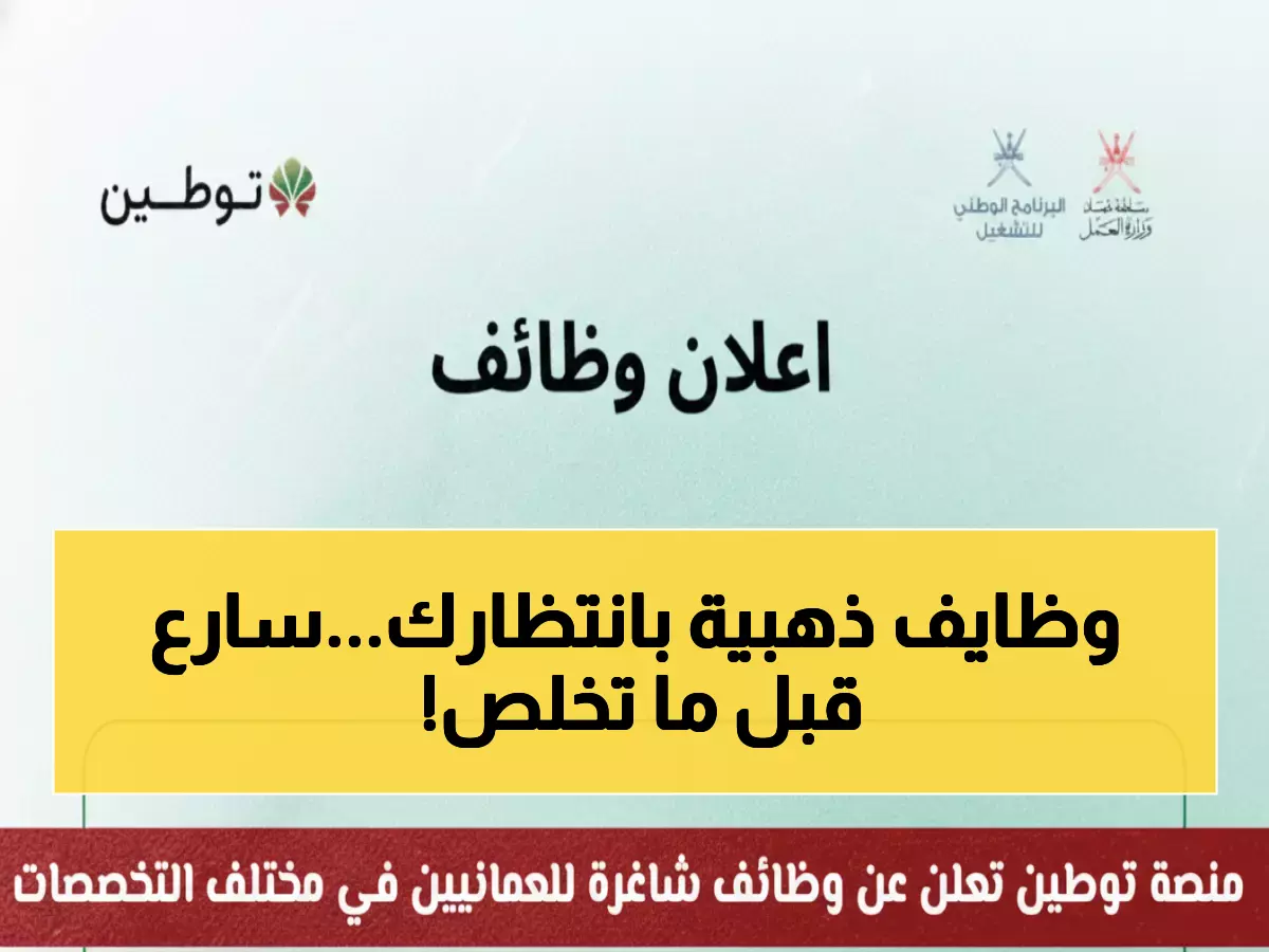 أحد عشر منصباً مرموقاً حصرياً للكوادر العمانية تم الإعلان عنها رسمياً عبر منصة توطين، في تطوّر يُعتبر نقلة نوعية لدعم التوظيف المحلي بالقطاع الخاص.