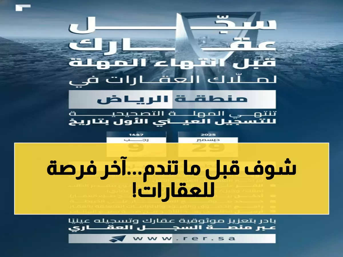 وأكدت الهيئة أن النظام الجديد سيمنح كل وحدة عقارية رقماً خاصاً وصك ملكية يتضمن كافة بياناتها. ووجهت نداءً عاجلاً لجميع الملاك بالتسجيل عبر منصة السجل العقاري الإلكترونية قبل فوات الأوان، محذرة من أن عدم التسجيل خلال الفترة المعلنة سيعرضهم لفرض غرامات مالية.