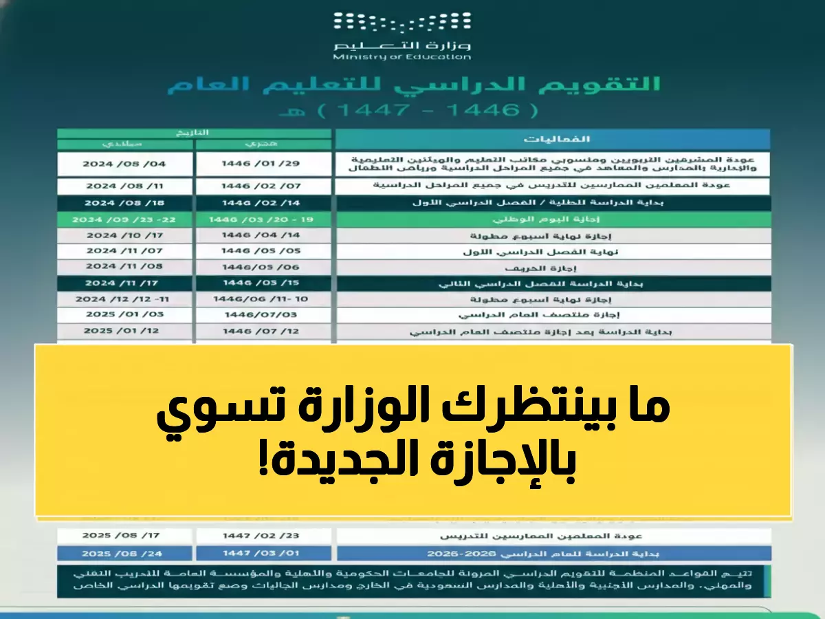 تأتي هذه الرحلة الطويلة وفقاً للتقويم الدراسي المقرر للعام الهجري 1447، حيث تنطلق مع انتهاء دوام الخميس الموافق 16 رمضان 1447هـ الموافق 5 مارس 2026.