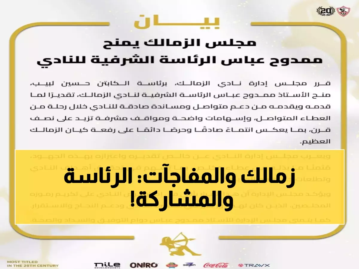 ديون تصل إلى 2.5 مليون دولار تهدد بإيقاف الزمالك أفريقياً، فيما يكرّم النادي رجلاً قدم له أكثر من نصف قرن من الدعم. هذا هو التناقض الذي يعيشه نادي الزمالك في أيامه الحالية، حيث تتصاعد أزمة مالية طاحنة تزامناً مع قرار مجلس إدارته برئاسة حسين لبيب، بتعيين ممدوح عباس رئيساً شرفياً للنادي.