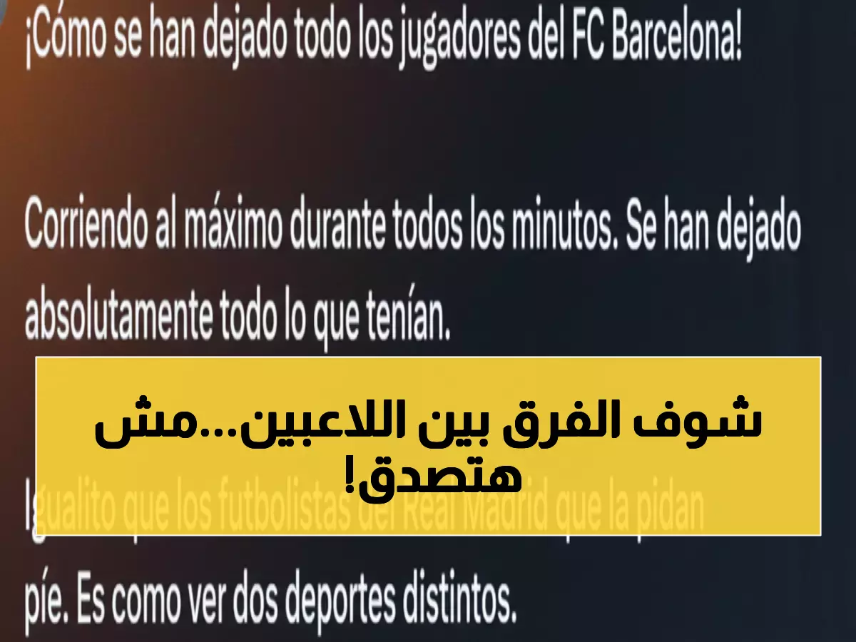 تسعون دقيقة كاملة من الجري بأقصى طاقة مقابل تسعين دقيقة من انتظار الكرة على القدم! هذا ما كشفه التحليل الصادم للصحفي سيرجيو فالنتين عن الفارق المذهل بين أداء فريقي برشلونة وريال مدريد في مباراتهما الأخيرة.