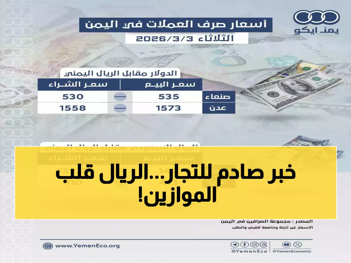 للمرة الأولى منذ أسابيع، حافظت العملة اليمنية على أرقام صرفها لليوم الثاني على التوالي - حيث سجل الدولار الأمريكي مساء الثلاثاء 3 مارس أسعاراً مطابقة تماماً ليوم الإثنين السابق.