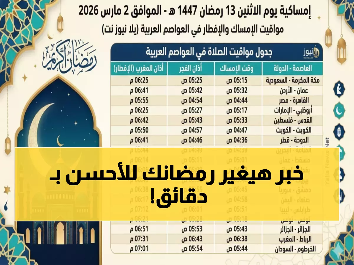 الرئيسية / شؤون محلية / عاجل: أسرار اليوم الـ15 من رمضان 2026 - الدعاء الذي يُستجاب خلال دقائق + مواقيت الإفطار لجميع محافظات مصر!