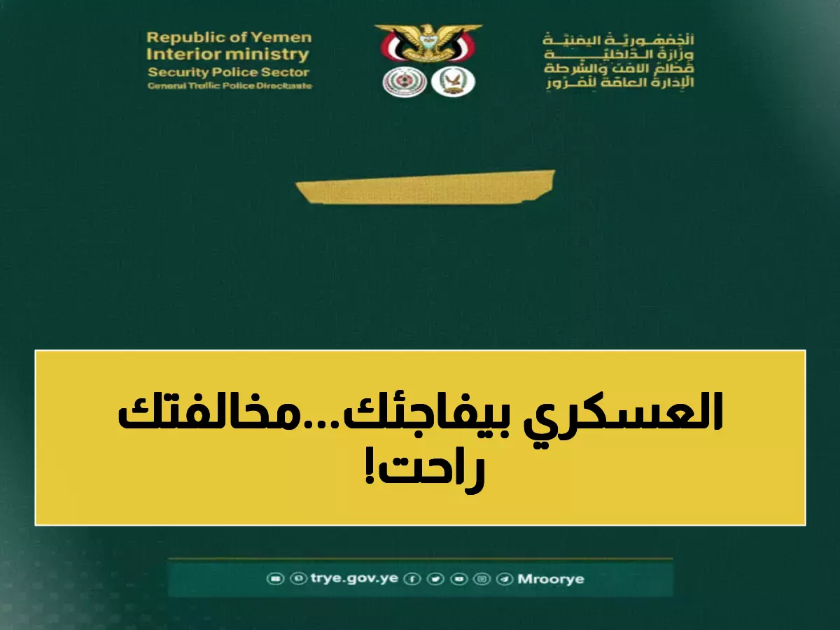 إعفاء كامل 100% من جميع الغرامات المرورية والرسوم المتراكمة - هذا ما أعلنته الإدارة العامة للمرور اليمنية في قرار استثنائي صادم يمنح المواطنين فرصة ذهبية لتوفير آلاف الريالات قبل الموعد النهائي في 30 شوال 1447 هـ.