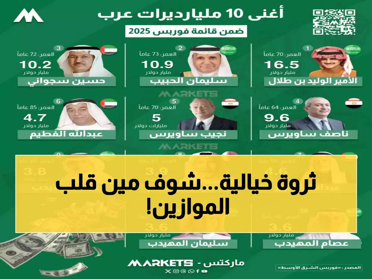 للمرة الأولى في التاريخ، تخترق الثروات العربية حاجز الـ138.7 مليار دولار - رقم فلكي يعكس قفزة جنونية بنسبة 8% خلال عام واحد، رغم تراجع عدد المليارديرات العرب من 39 إلى 37 شخصاً فقط.