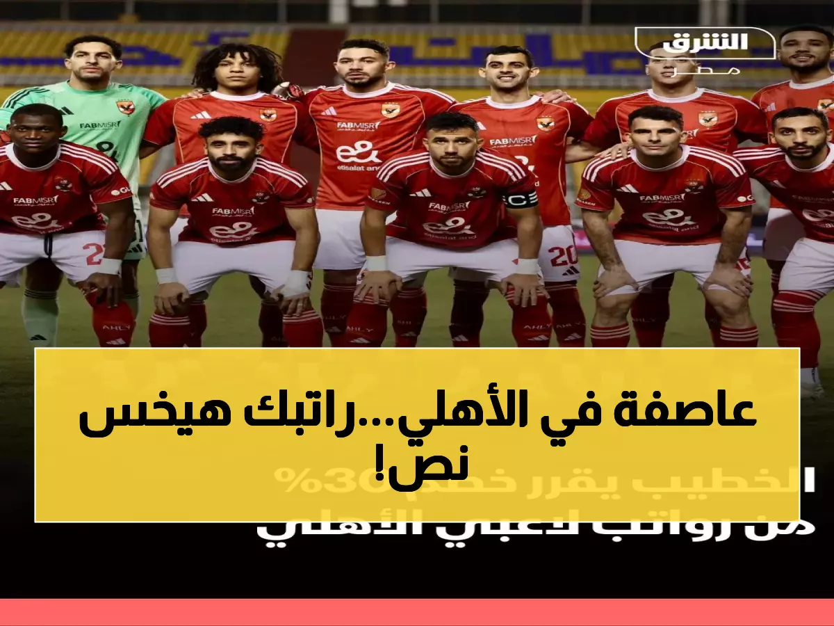 ضربة صاعقة تهز أركان القلعة الحمراء: قرارات جذرية وصفت بـ"الصارمة" أطلقها الكابتن محمود الخطيب تقضي بخصم 30% من الرواتب الشهرية للاعبي الأهلي، مع تعليق ربع قيمة عقودهم السنوية عقاباً على التهاون في النتائج.