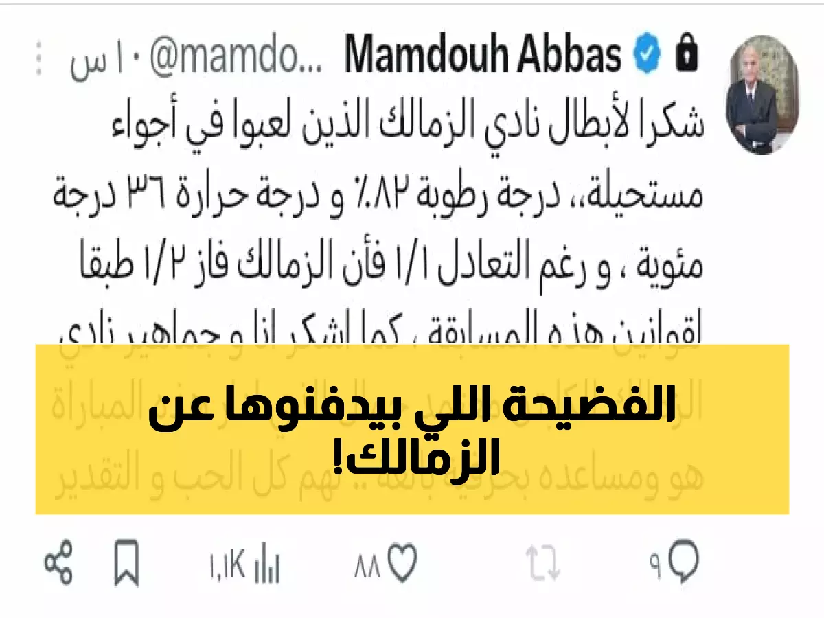وأشاد عباس عبر منصة "إكس" بصمود لاعبي الزمالك في مواجهة ظروف وصفها بـ"الأجواء المستحيلة" في الكونغو، حيث بلغت نسبة الرطوبة 82% ودرجة الحرارة 36 مئوية، مما وضع ضغوطاً بدنية هائلة على اللاعبين.