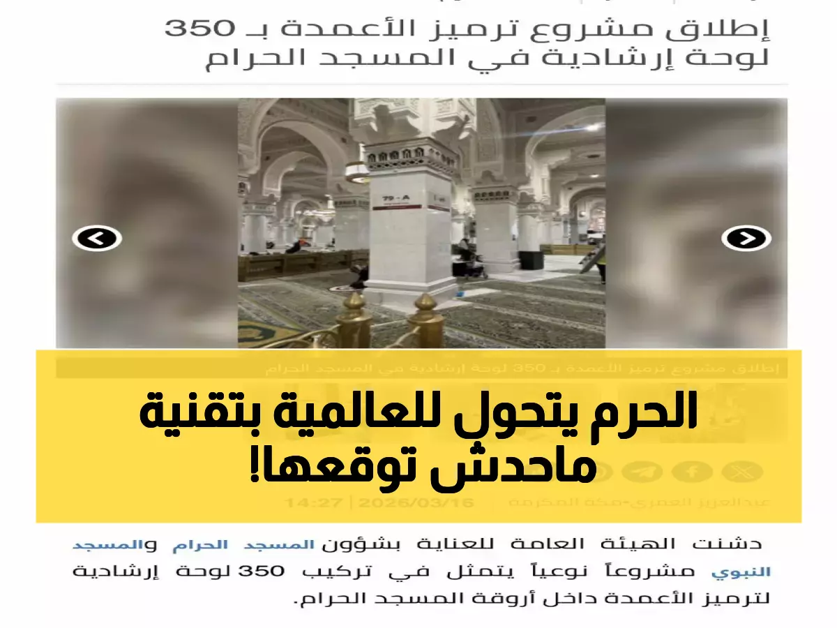هذا الإنجاز الاستثناري، الذي أطلقته الهيئة العامة للعناية بشؤون المسجد الحرام والمسجد النبوي مع بداية الشهر الفضيل، يعيد تعريف مفهوم الإرشاد المكاني في أعظم مسجد بالعالم. المشروع النوعي يعتمد على ترميز الأعمدة بتقنية متقدمة تضمن وصول ضيوف الرحمن لوجهاتهم بسرعة البرق.