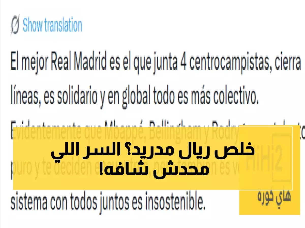 ووجه الصحفي باكيلو مارسيكال، عبر موقعه "هاي كورة"، نقداً لاذعاً للتكتيك الحالي، مشيراً إلى أن سرّ النجاح الحقيقي لريال مدريد يتمثل في تشكيل مختلف تماماً. ويرى مارسيكال، في تحليله الخاص، أن الفريق الأمثل هو ذلك الذي يقدم روحاً جماعية متماسكة، حيث يضيق لاعبو الوسط الأربعة المساحات ويتعاونون فيما بينهم، بعيداً عن التركيز على الفرديات.