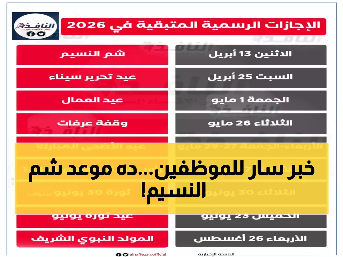 عاجل: موعد شم النسيم 2026 في مصر وجدول الإجازات الرسمية.. الحكومة تُعلن عن الإجازة المُدفوعة والأيام المُتبقية للعاملين