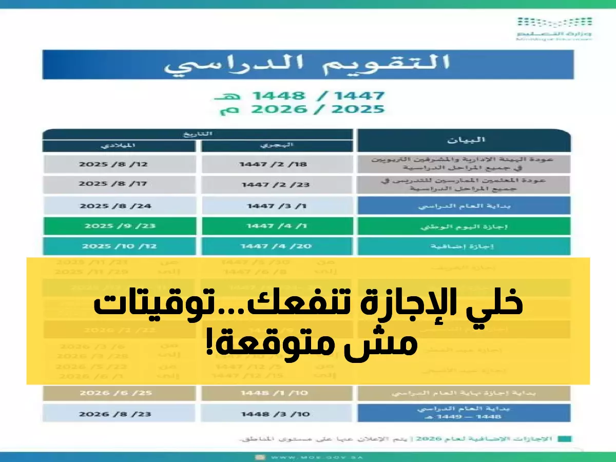 وتمثل معرفة هذه التواريخ المحددة سلفاً خارطة طريق حيوية للأسر المصرية لتنسيق خطط الدراسة والأنشطة العائلية، مع ضرورة تحقيق التوازن المطلوب بين الراحة النفسية والتحضير الأكاديمي الجاد.