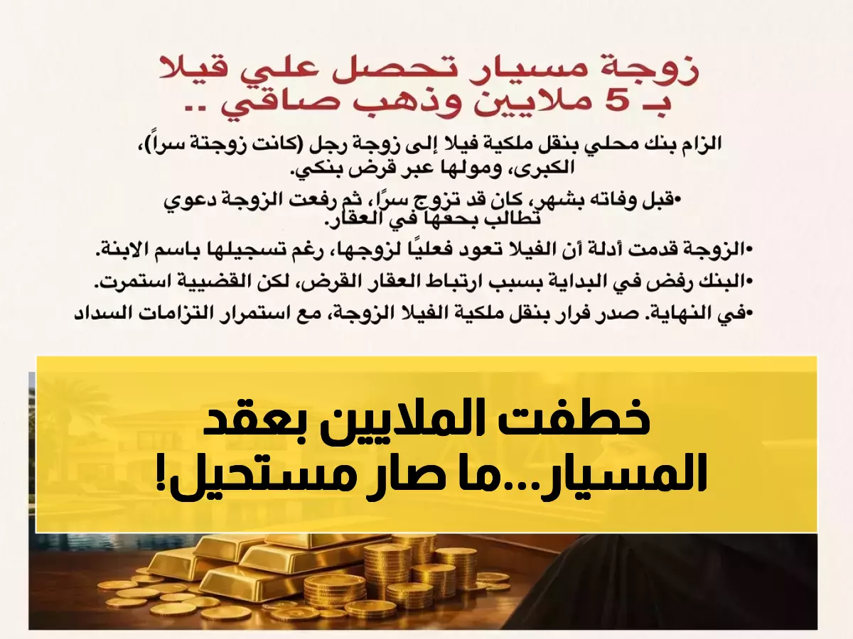 عاجل: زوجة المسيار ترث فيلا بـ5 ملايين ريال والذهب رغم رفض البنك - قرار قضائي يهز السعودية!