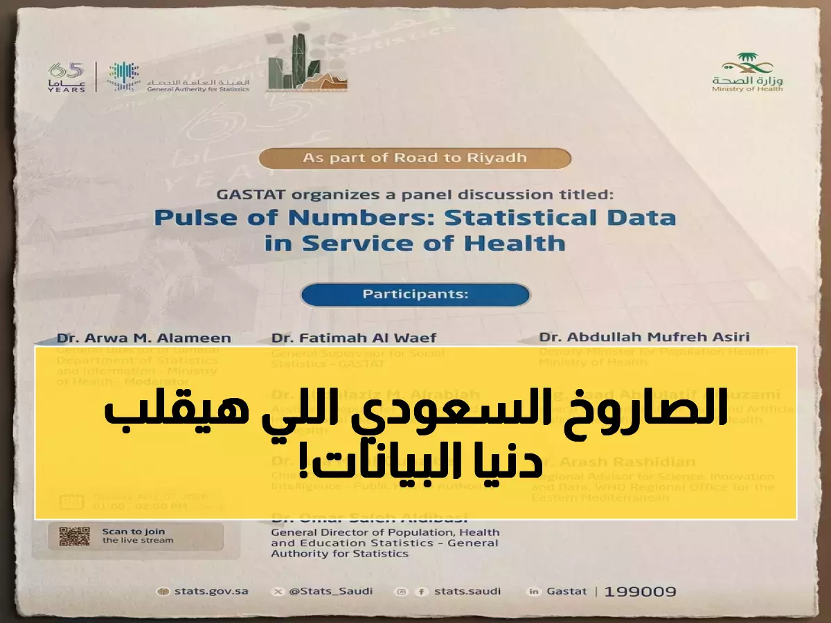 وتحمل الجلسة عنوان «نبض الأرقام.. البيانات الإحصائية في خدمة الصحة»، وتعد محطة حيوية ضمن سلسلة فعاليات «الطريق إلى الرياض»، التي تمهد لهذا المنتدى العالمي المرتقب في نوفمبر 2026.