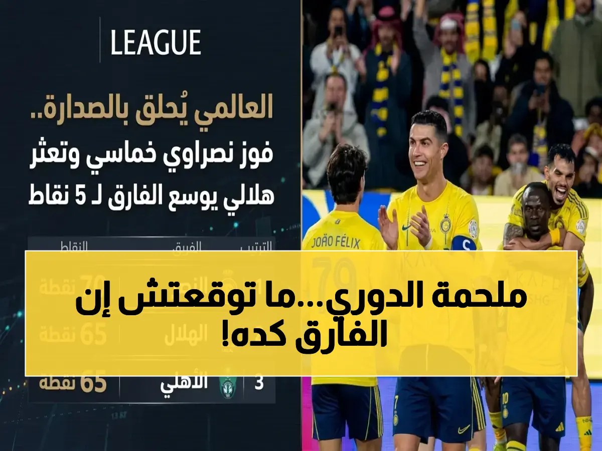 ويتصدر النصر جدول الترتيب برصيد 70 نقطة، بينما يتقاسم نادي الهلال السعودي والنادي الأهلي السعودي المركزين الثاني والثالث برصيد متساوٍ قدره 65 نقطة لكل منهما. هذا الفارق منح المتصدر أفضلية واضحة، بينما أوقع المطاردين في مأزق حسابي صعب.