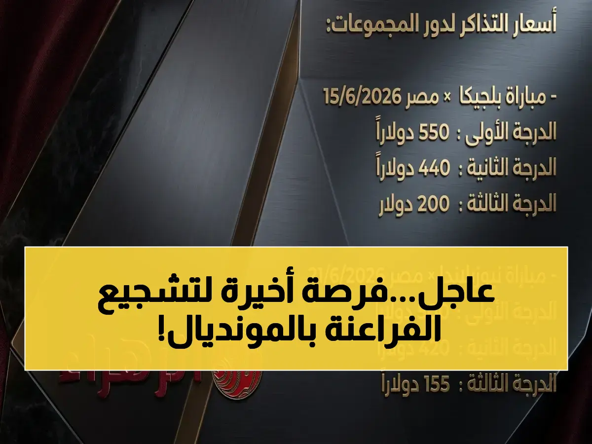 تحت شعار "الأولوية لمن يحمل تأشيرة" ولـ10 أيام فقط، أطلق الاتحاد المصري لكرة القدم رسمياً عملية بيع حصري لتذاكر مشجعي الفراعنة في مونديال 2026، محددة بأربع تذاكر كحد أقصى للفرد الواحد في كل مباراة.