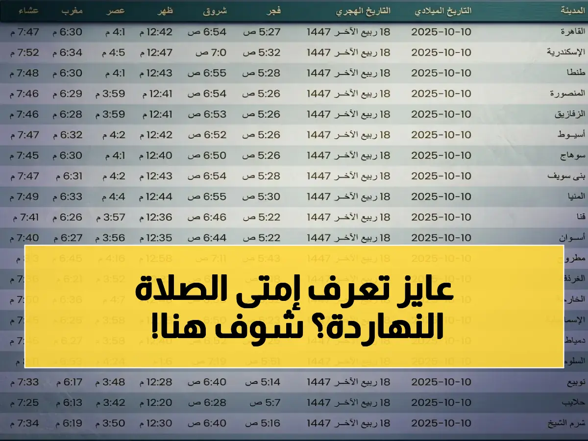 ويمكن للمصلين الاطلاع على الجداول التي توضح المواعيد في مدن رئيسية مثل القاهرة والإسكندرية والإسماعيلية وأسوان، مما يساعد في تنظيم أوقات العبادة بشكل منتظم.