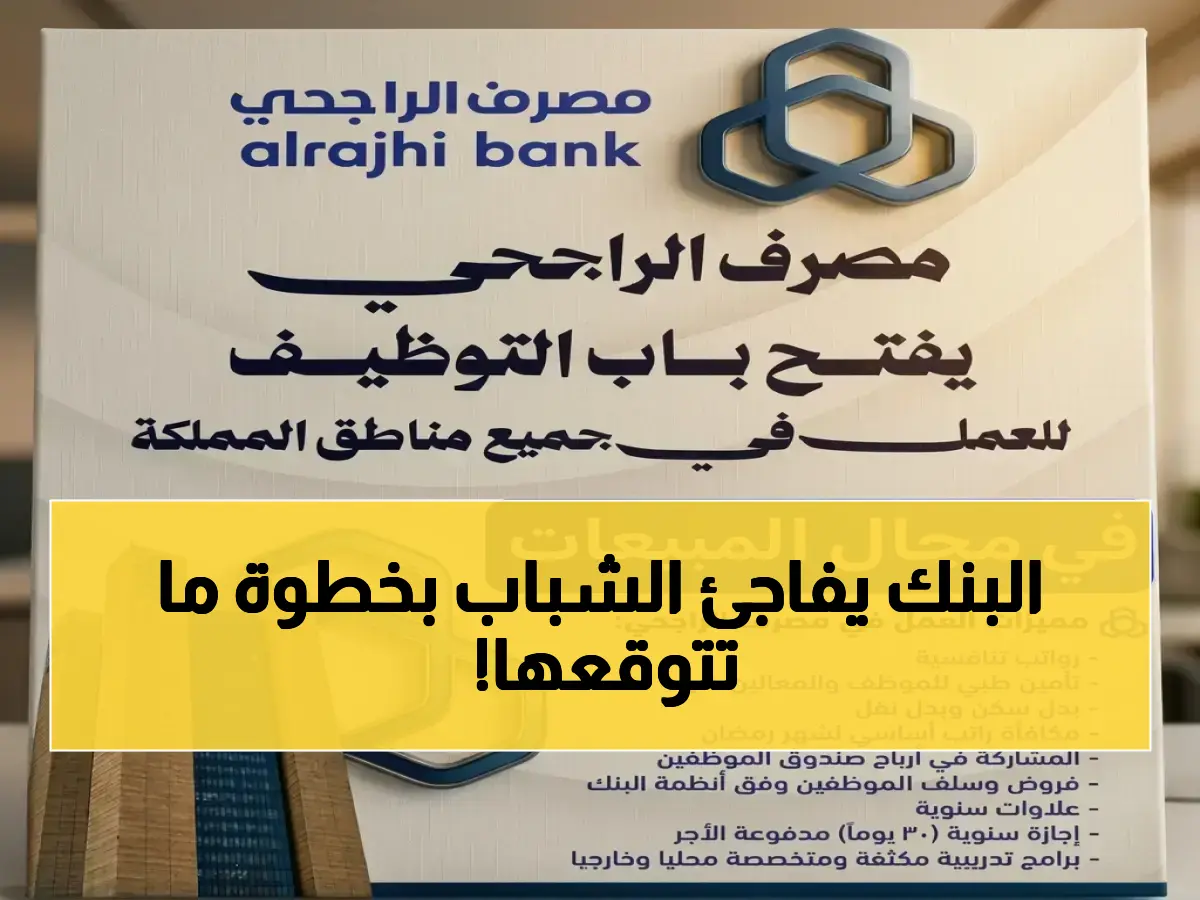في خطوة تعيد رسم معايير التشغيل في القطاع المصرفي، يلغي مصرف الراجحي، أكبر بنك إسلامي في العالم، شرط الخبرة تماماً من عملية التوظيف. هذا القرار الاستراتيجي يفتح باباً كان مغلقاً تقليدياً أمام آلاف الخريجين الطموحين للانضمام إلى المؤسسة المالية العملاقة.