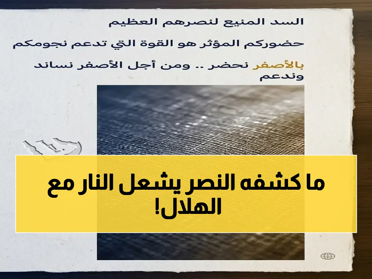 ففي المنشور التحفيزي الذي نُشر على منصة "X"، جاءت العبارة: "السد المنيع لنصرهم العظيم.. حضوركم المؤثر هو القوة التي تدعم نجومكم.. بالأصفر نحضر.. ومن أجل الأصفر نساند وندعم". وعلى الرغم من الطابع التشجيعي الظاهري، فإن ظهور كلمة "السد" بالتزامن مع المباراة منح التغريدة بُعداً آخر في نظر كثير من المتابعين، الذين رأوا فيها إشارة إلى المشهد الآسيوي.
