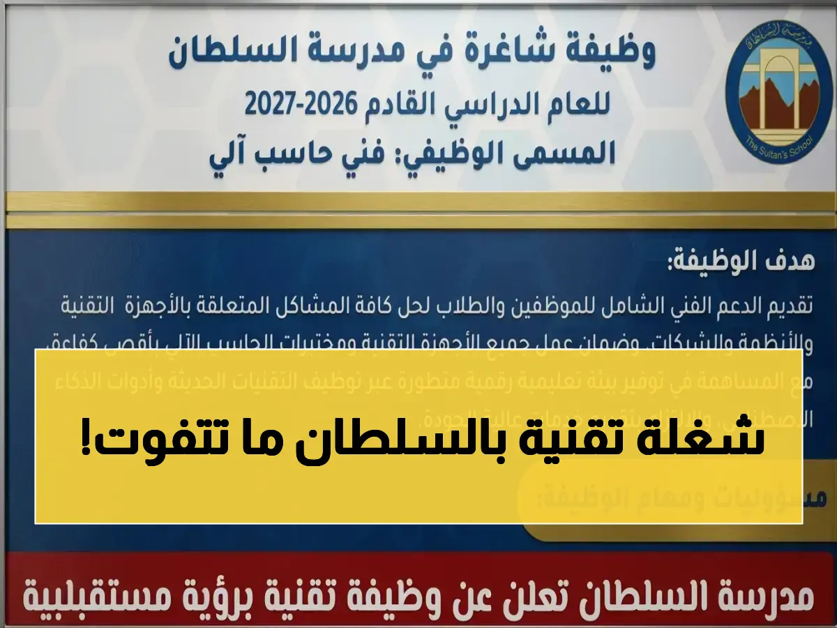 عاجل: مدرسة السلطان تعلن عن وظيفة تقنية نادرة… فرصة ذهبية للعمانيين للانضمام إلى مستقبل الذكاء الاصطناعي في التعليم!
