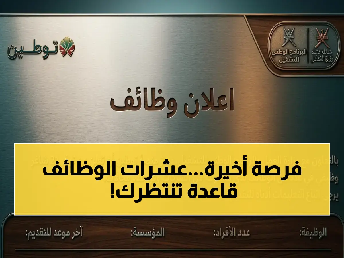 فرصة ذهبية: منصة 'توطين' تفتح أبواب التوظيف لـ21 شاغراً حصرياً للعمانيين في كبرى البنوك والشركات النفطية - انتهاء التقديم 27 أبريل