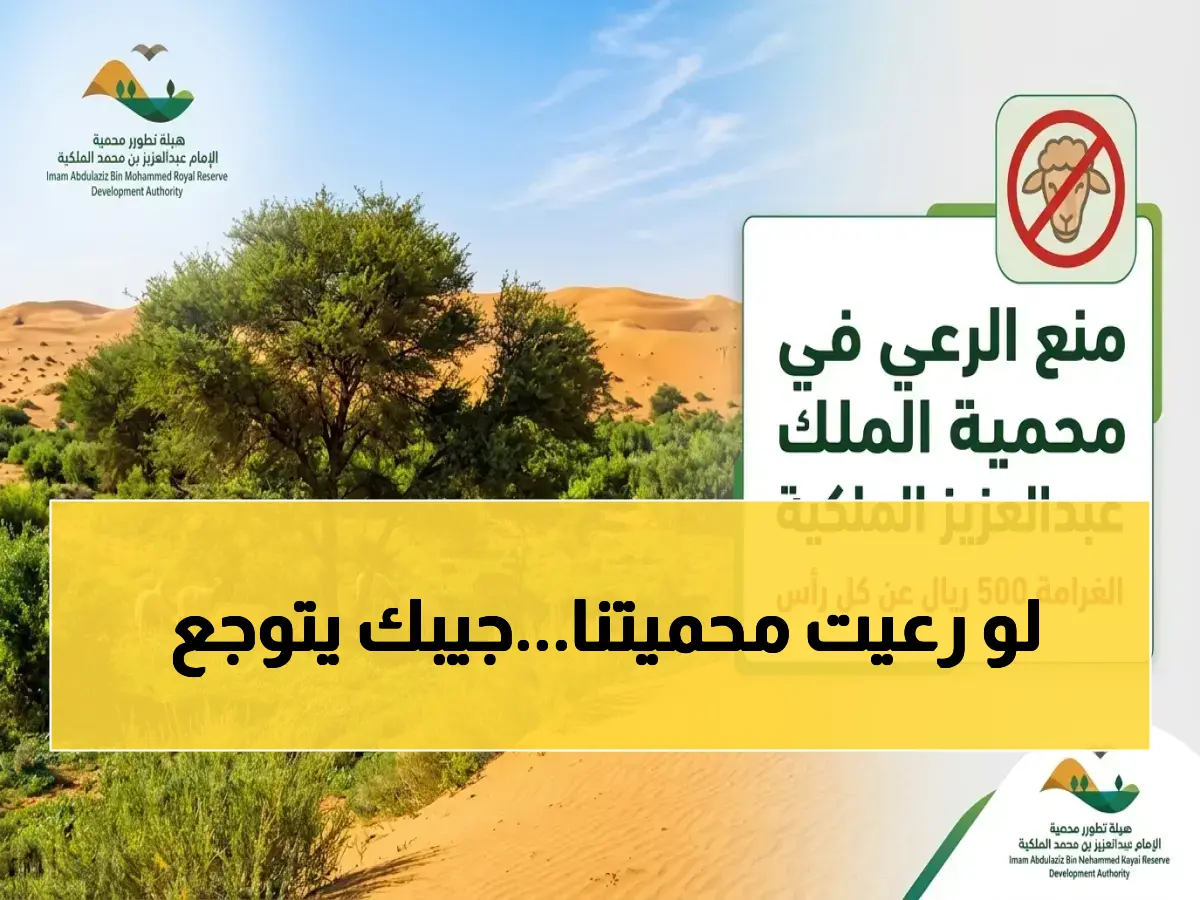 عاجل: هيئة تطوير محمية الملك عبدالعزيز تمنع الرعي وتفرض غرامة 500 ريال لكل رأس… هل أنت من المستثنى؟